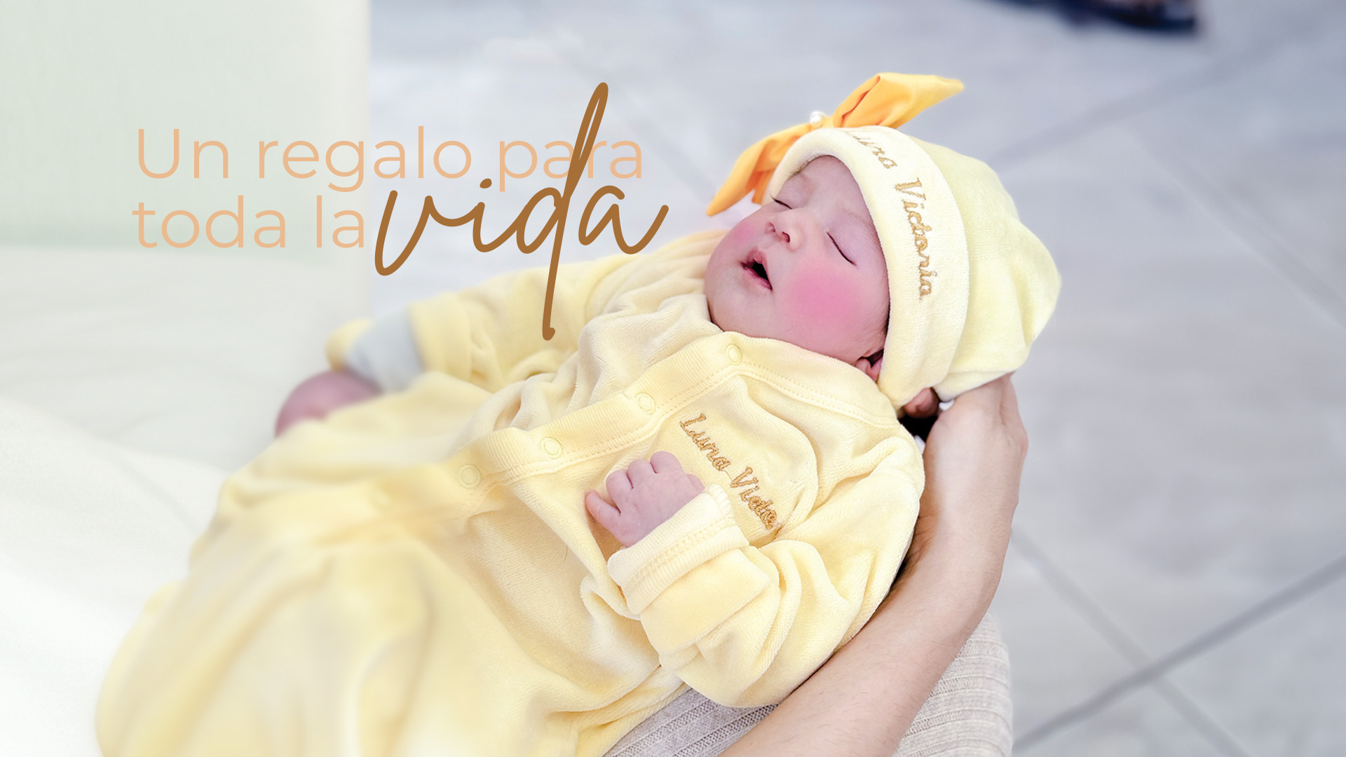 Set de Bienvenida Personalizado Capullos Amarillo de Niña en Algodón Peinado