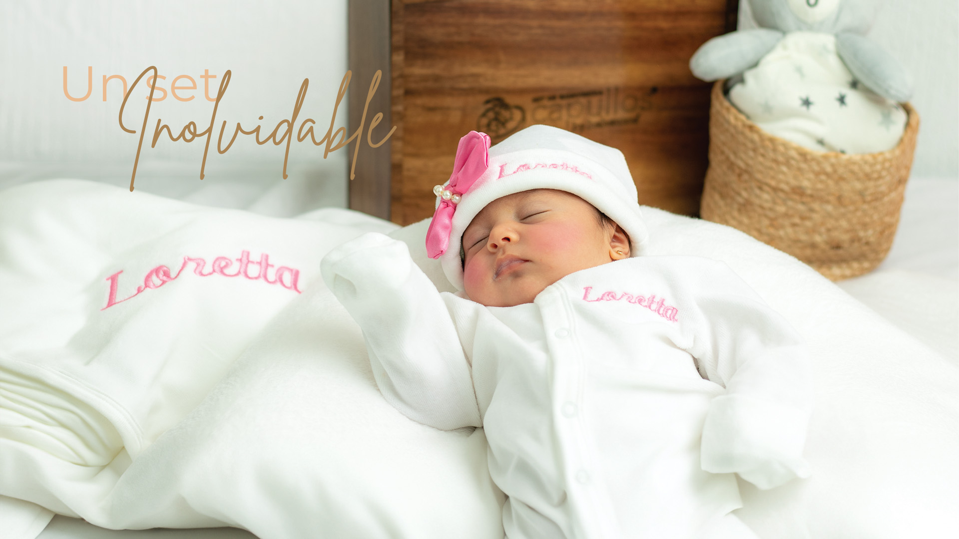 Set de Bienvenida Personalizado Capullos Blanco de Niña en Algodón Peinado