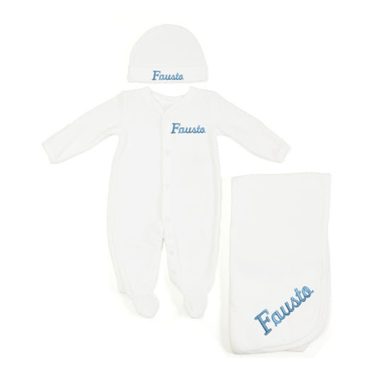 Set de Bienvenida Personalizado Capullos Blanco de Niño en Algodón Peinado