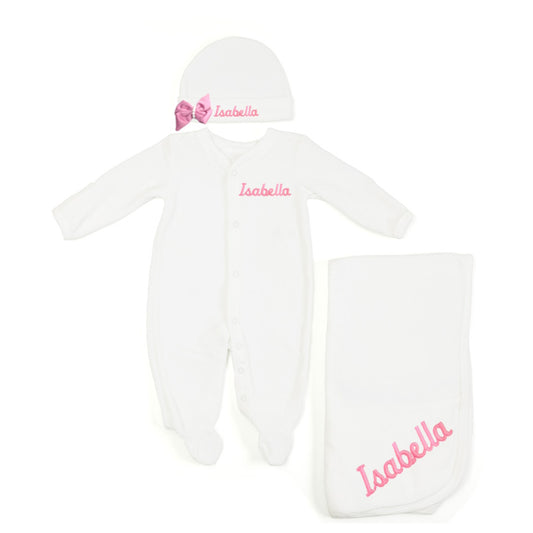 Set de Bienvenida Personalizado Capullos Blanco de Niña en Algodón Peinado